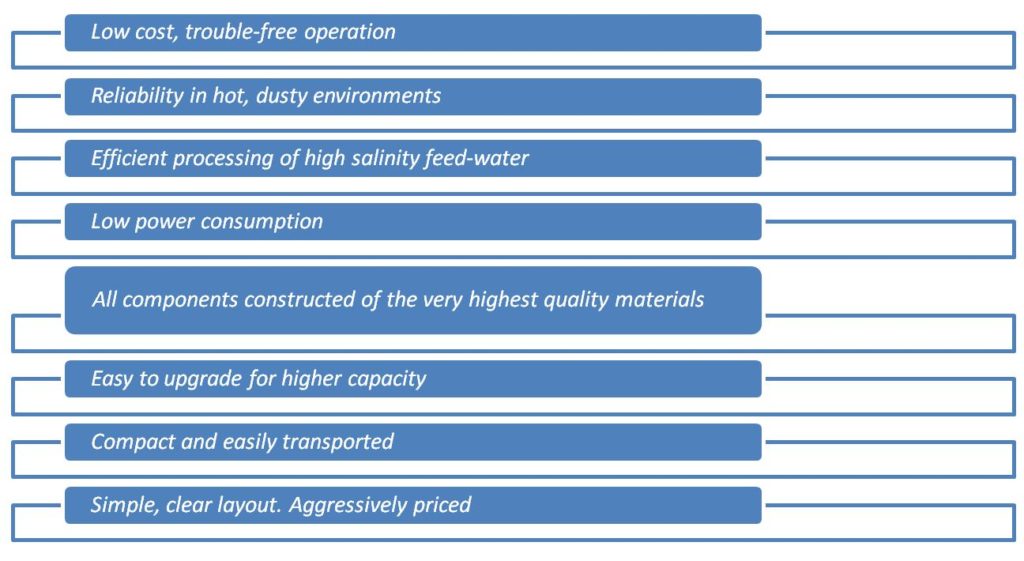The most economical and popular technology to desalinate seawater and brackish water is reverse osmosis. By continuously developing this technique over recent years, it has been possible to reduce energy consumption to a minimum, enabling a significant reduction in water production costs. The design and construction of seawater desalination systems primarily depend on the salinity of the available water, the substances contained in the water, and the parameters required for product water.